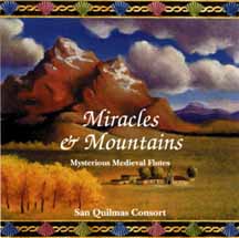 An ear-catching selection of compositions with Celtic and Gregorian chant influences. Several Medieval instruments, such as the haunting gemshorn flute and recorder, combine with synthesizers to give a new sound to music which recalls an era of mist-shrouded castles, awe-inspiring cathedrals and lively peasant dances. For the contemporary music fan there is usually a sharp division between secular and religious music. However, the average person living in Medieval Europe was used to a cross-pollination of musical styles. Often the melodies that showed up in the ballads and dance-oriented tunes popular with peasants had their roots in Gregorian chant. In turn, some composers of early liturgical music borrowed melodies from the love songs of the troubadours who traveled through much of continental Europe. The result of this cross-pollination is the basis of much of the music we still hear today in Celtic music, with its selection of jigs and slower ballad-style pieces. The tunes often retain a melodic and rhythmic sense that reaches as far back as the 10th Century. By using a variety of Medieval secular and liturgical music as a jumping-off point, composer Alice Gomez presents a unique take on what is usually considered "ancient music." She takes such Renaissance and Medieval dance forms as the galliard and courante and faithfully presents their melodies and rhythms in arrangements that call for synthesizer as well as such period instruments as the gemshorn flute, rebec and recorder. In addition, she has written three solo pieces for the haunting gemshorn flute, based on church music of the Middle Ages. However, there is a historical precedent for this mixing and matching of musical styles. Descriptions of religious pilgrimages made to Santiago de Compostela, in Northwestern Spain, relate how itinerant musicians played a variety of music for the pilgrims along the journey that took them through two sets of mountain ranges. The pilgrims' emblem was the scallop shell. The cathedral of Santiago de Compostela was the goal of the pilgrims' journey because the body of St. James, or Santiago in Spanish, was said to have been buried there. Listening to "Miracles & Mountains" it's easy to imagine a group of pilgrims making their way across Galicia, Spain's strongly Celtic province. "Shepherd's Danse" marks the joyful beginning of the pilgrims' journey while cuts such as "Chant for Solitude" reflect the religious nature of the journey. "Pavane For A Dreary Night" brings to mind the constant storms that are as much a part of Galicia as its green hills. Other cuts such as "Song of the Goatherd" and "Celtic Dreams" conjure other pictures of the pilgrims' journey culminating in the solemn "Pastoral Meditation" at the end of the pilgrimage. [Tracks] [Musicians] [Instruments] [Production Credits] [Contact Info]